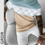 Men’s business casual t-shirt, contrast color tee men, summer office t-shirt, round neck smart casual tee, TrendsGRDR men’s t-shirt