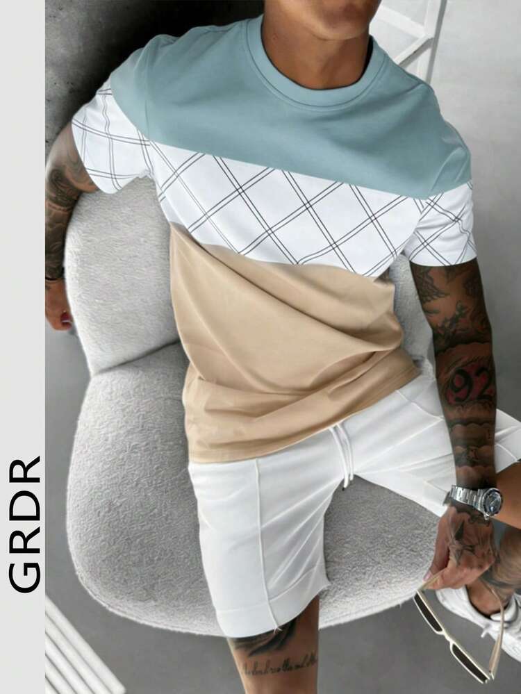 TrendsGRDR Men’s Contrast Color Round Neck T-Shirt – Summer Business Casual Short Sleeve Tee