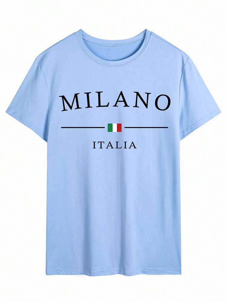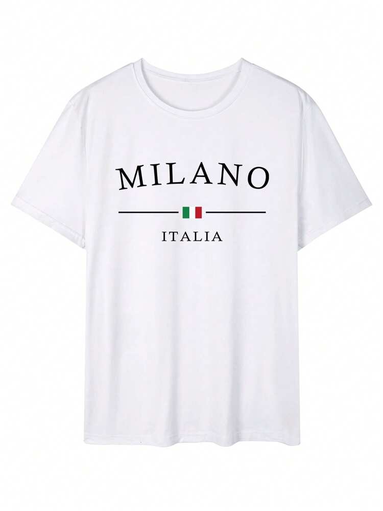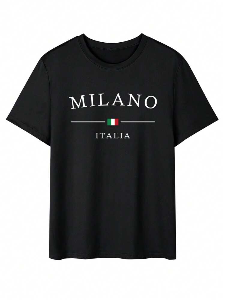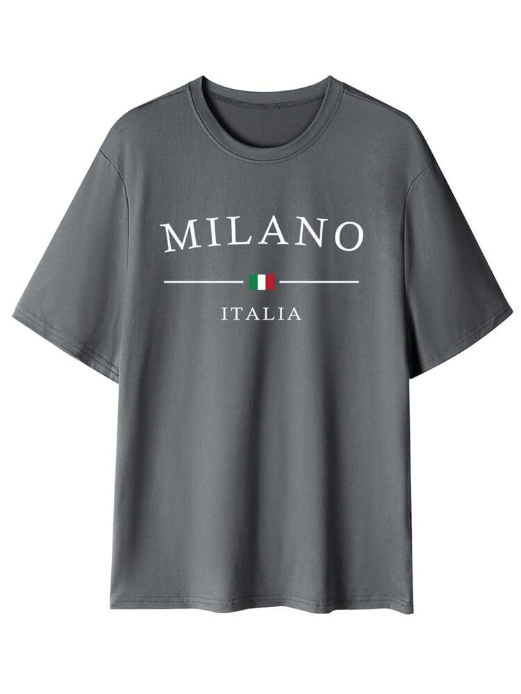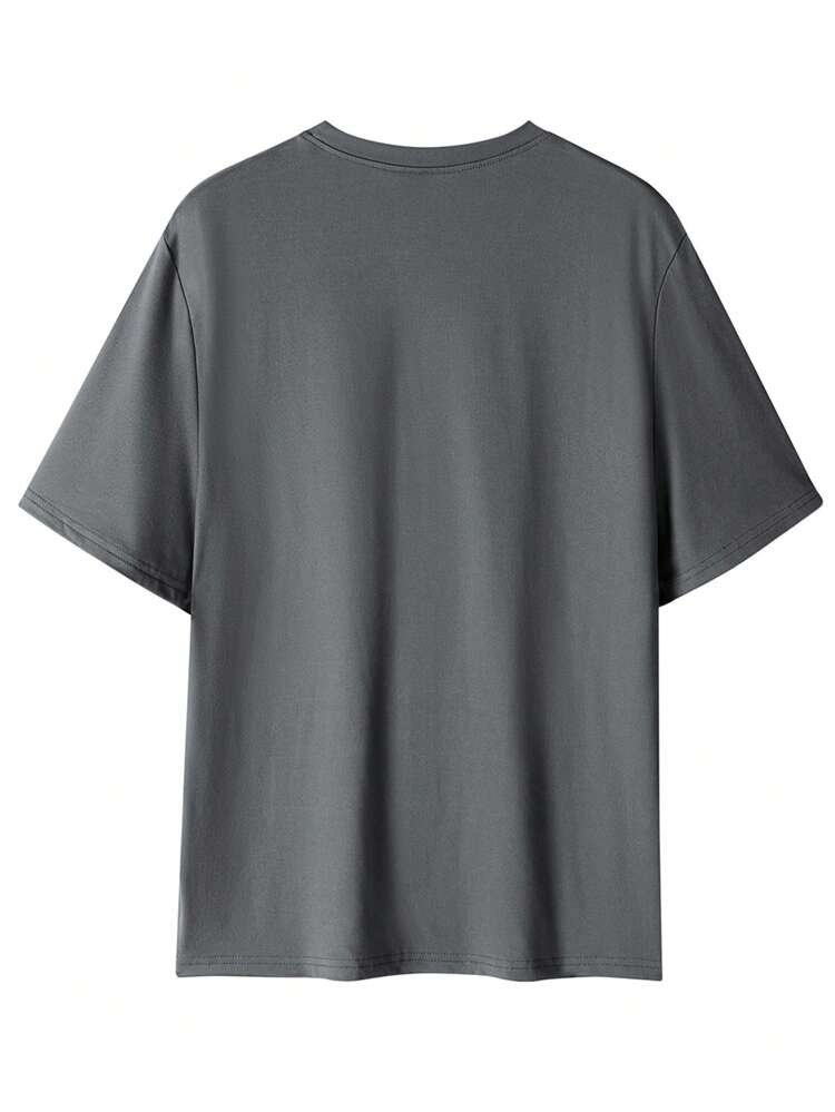 TrendsMen summer letter print round neck t-shirt for men. Lightweight, breathable, and perfect for casual everyday streetwear.
