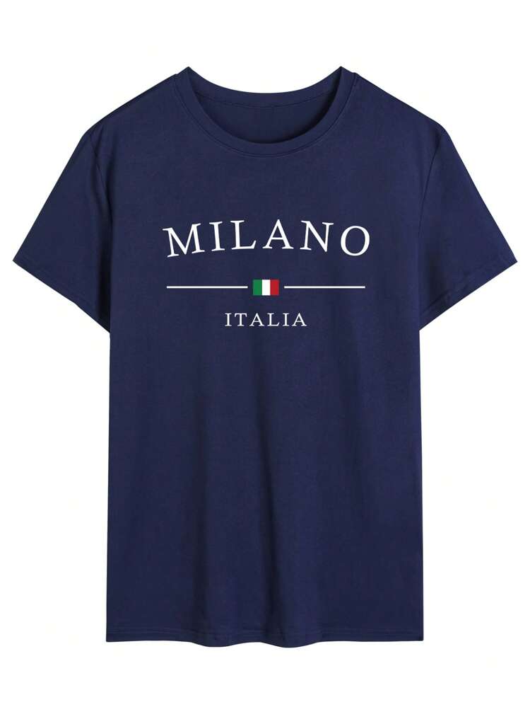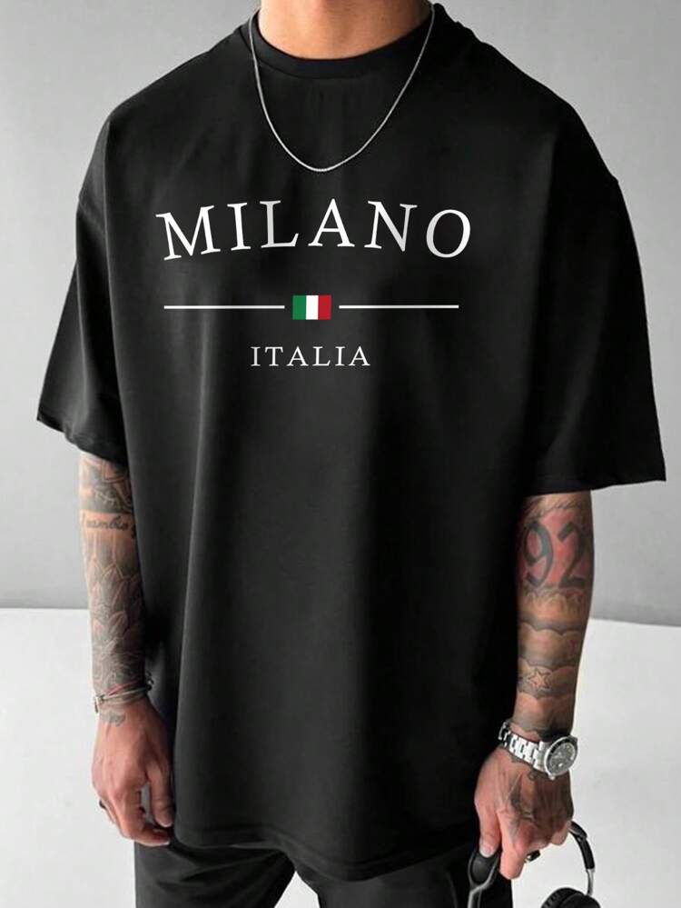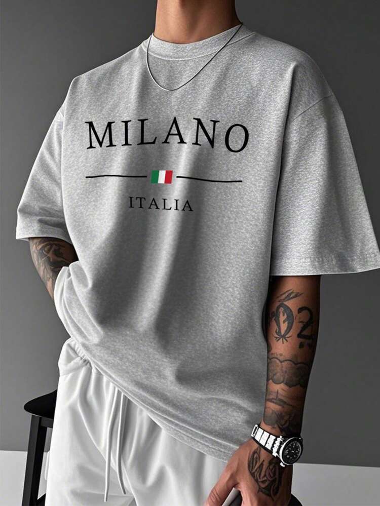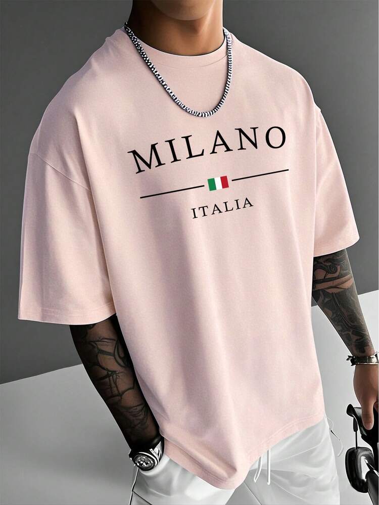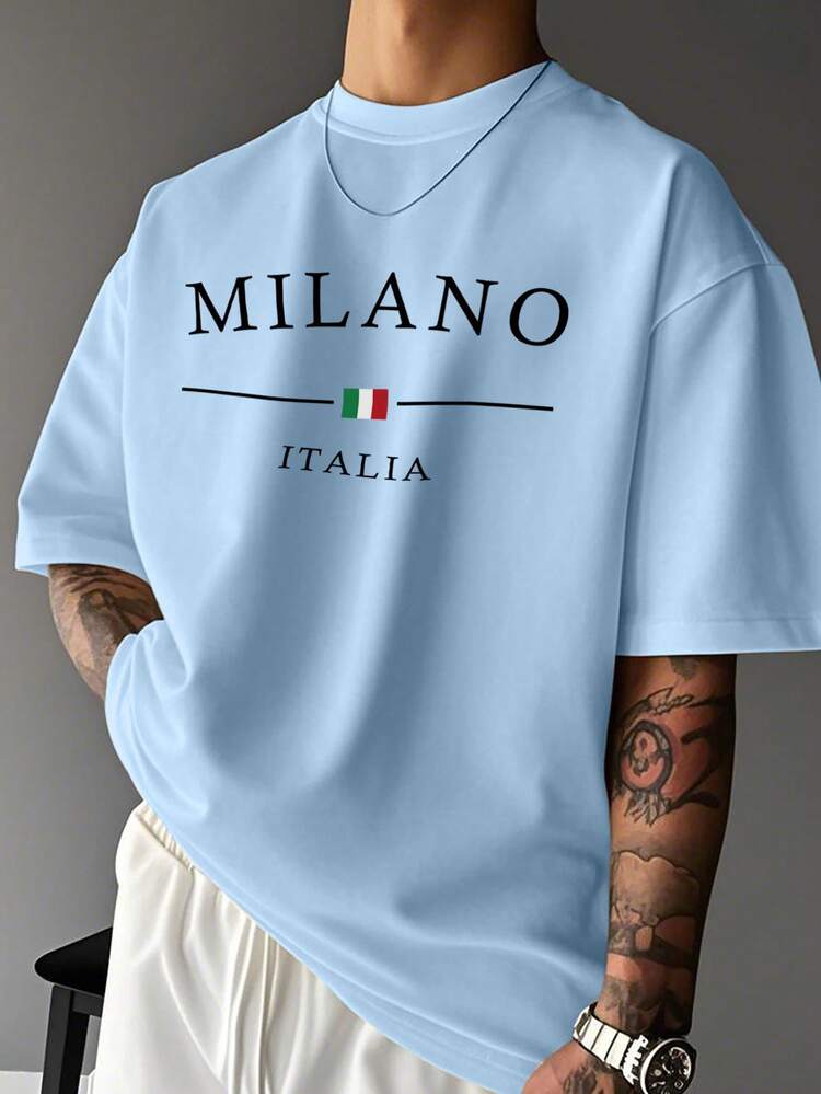 TrendsMen summer letter print round neck t-shirt for men. Lightweight, breathable, and perfect for casual everyday streetwear.