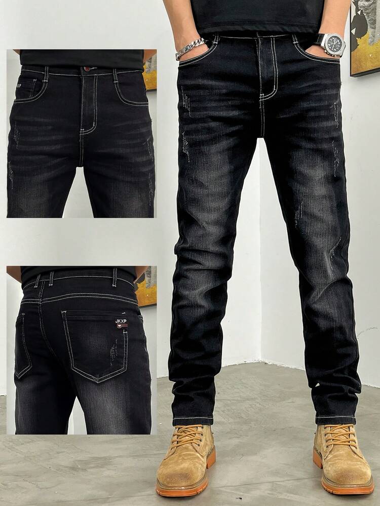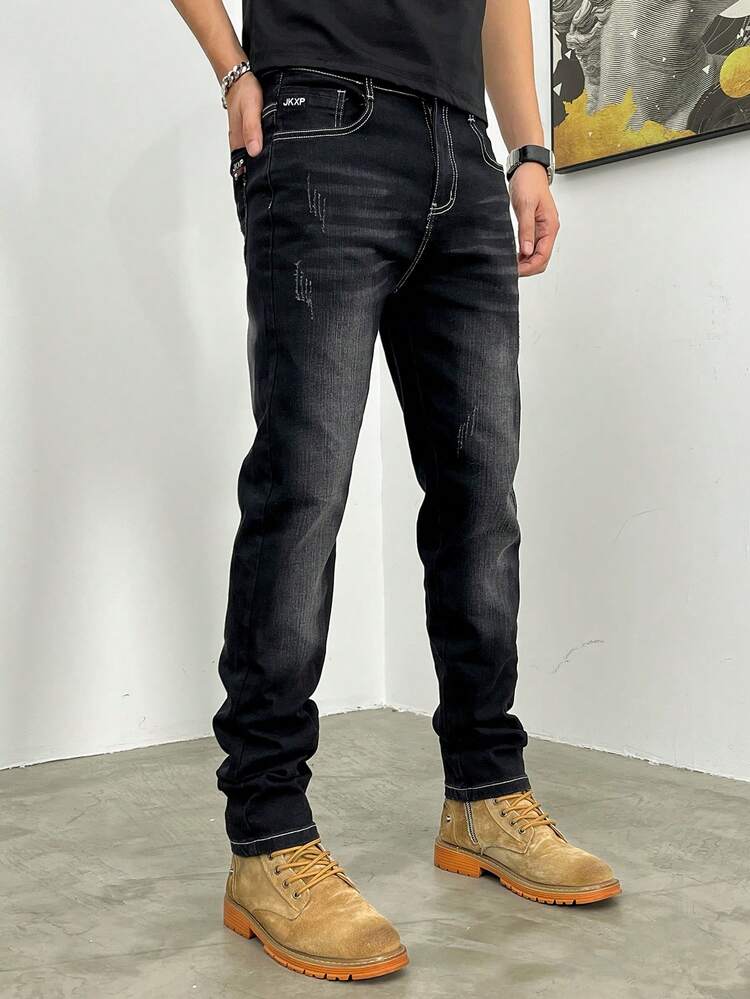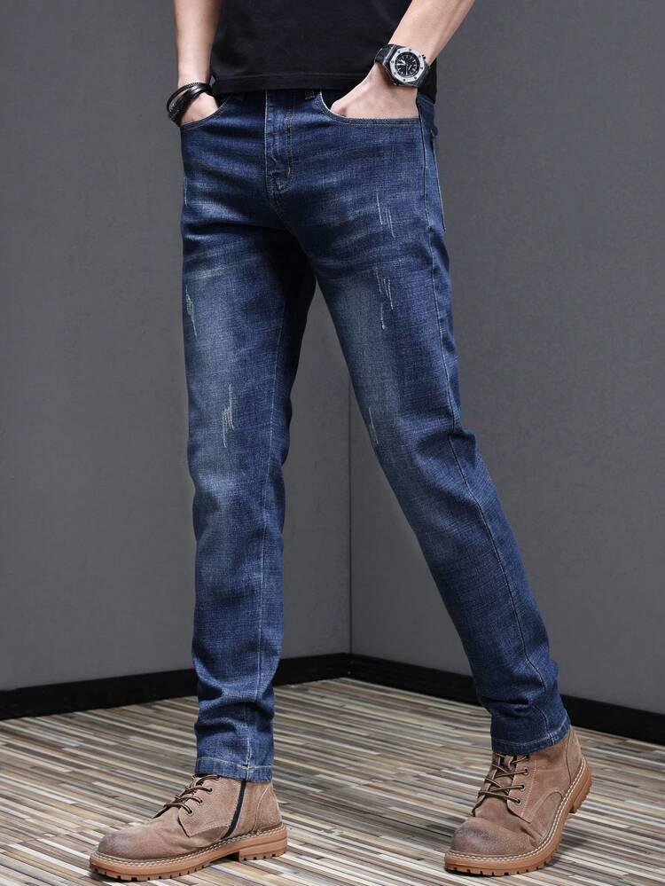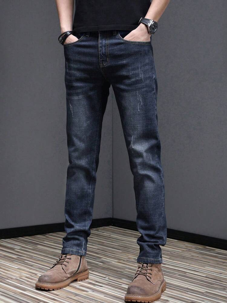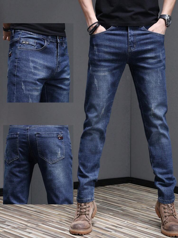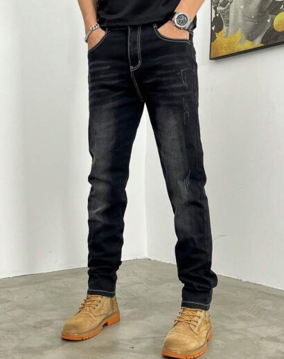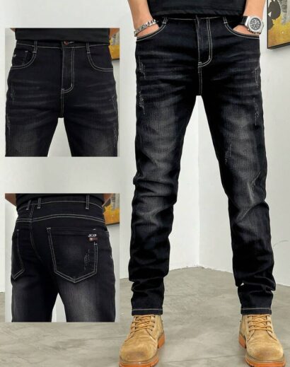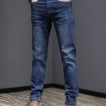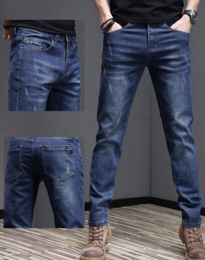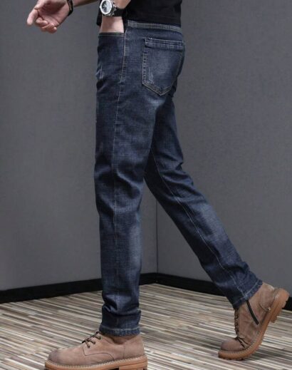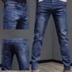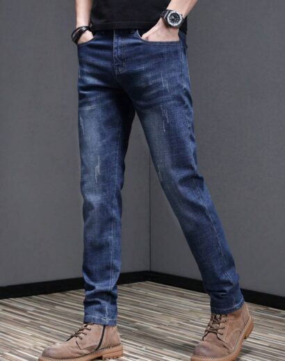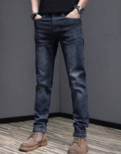 Crafted from durable yet comfortable denim fabric, these jeans offer an elastic waistband for flexible wear, along with a slim-fit tapered silhouette and straight-leg finish that balances structure and relaxed style. The loose long cut adds a trendy street edge, making them perfect for contemporary casual fashion.