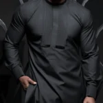 Be the first to review “Men’s Black Two-Piece Outfit – Long Sleeve Pleated Shirt & Drawstring Trousers Set”
