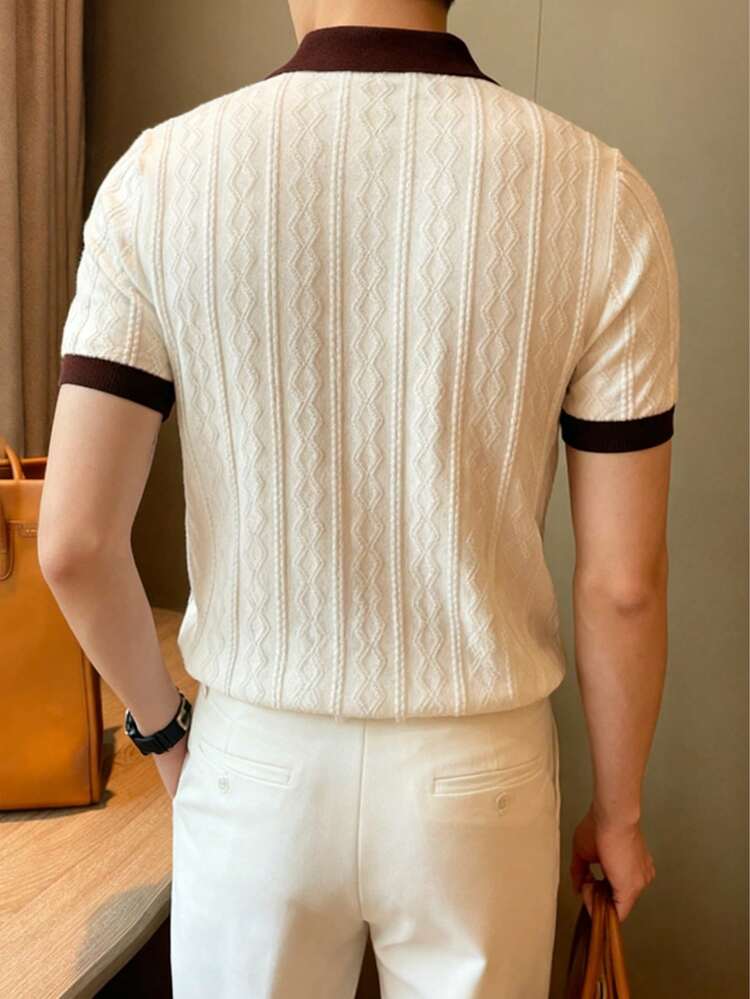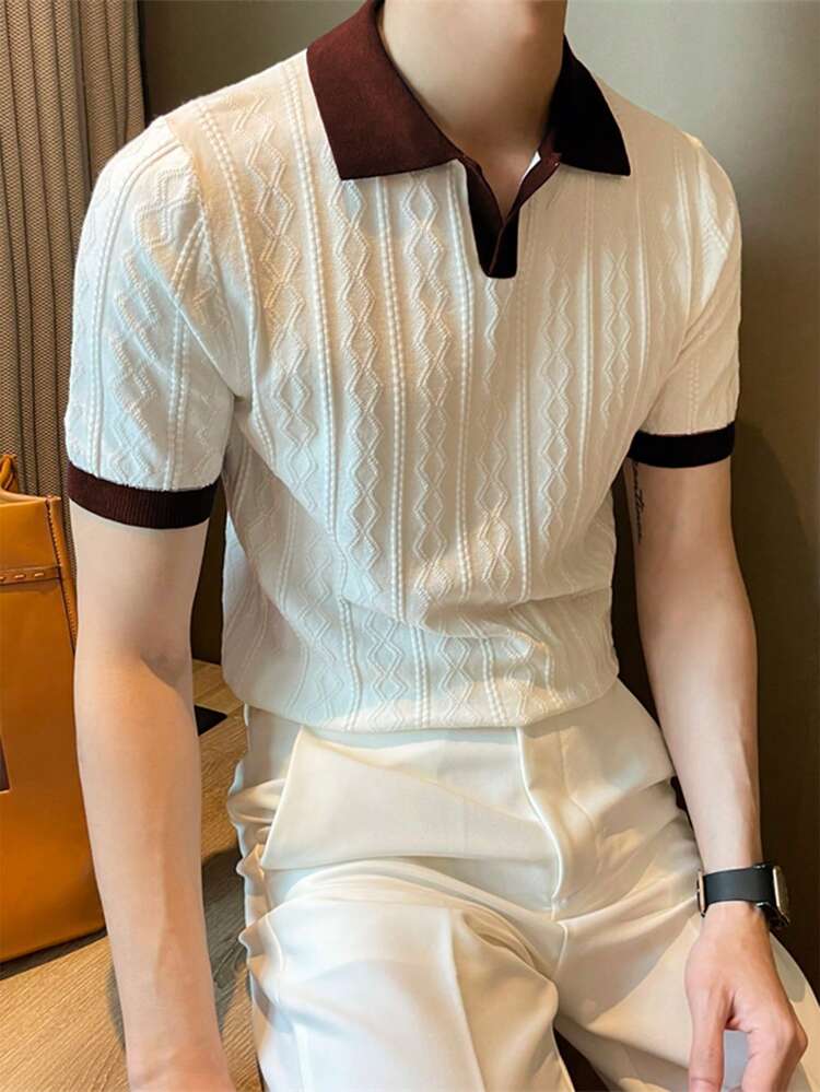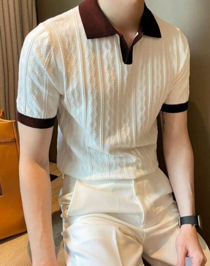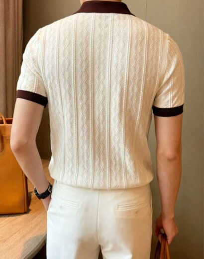 Upgrade your everyday style with the Men’s Contrast Color Short Sleeve Knitted Cable Textured Polo Shirt, designed for men who appreciate modern texture, refined contrast details, and smart-casual comfort. Featuring a cable-knit textured pattern with stylish contrast color accents, this polo shirt adds depth and visual interest to a classic silhouette.