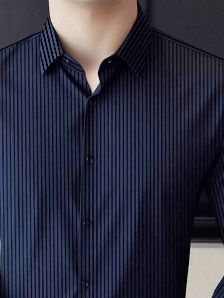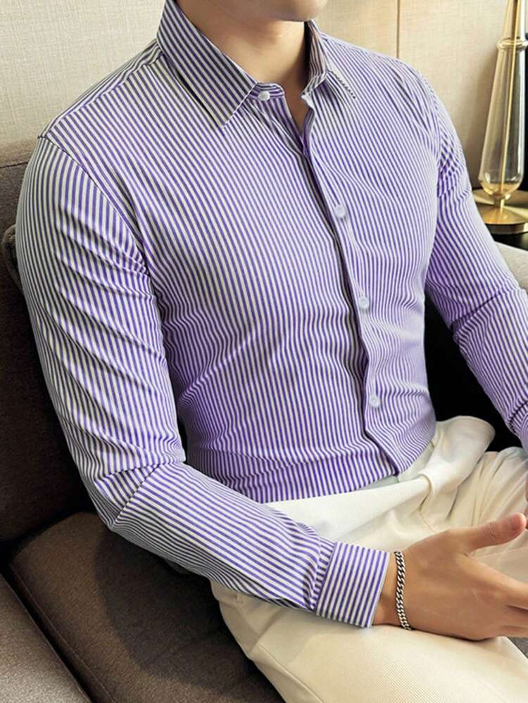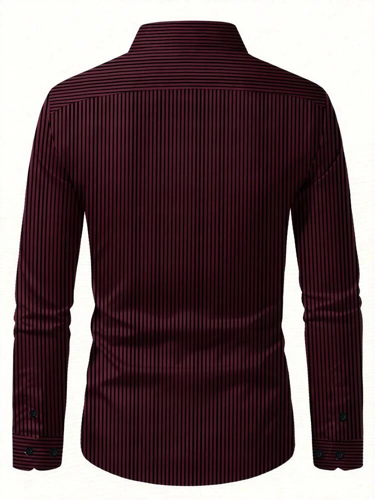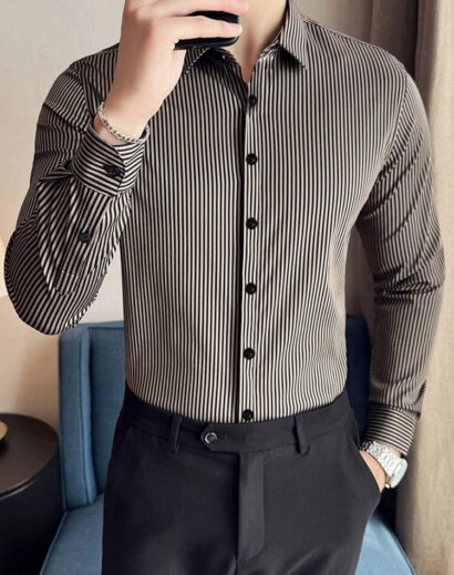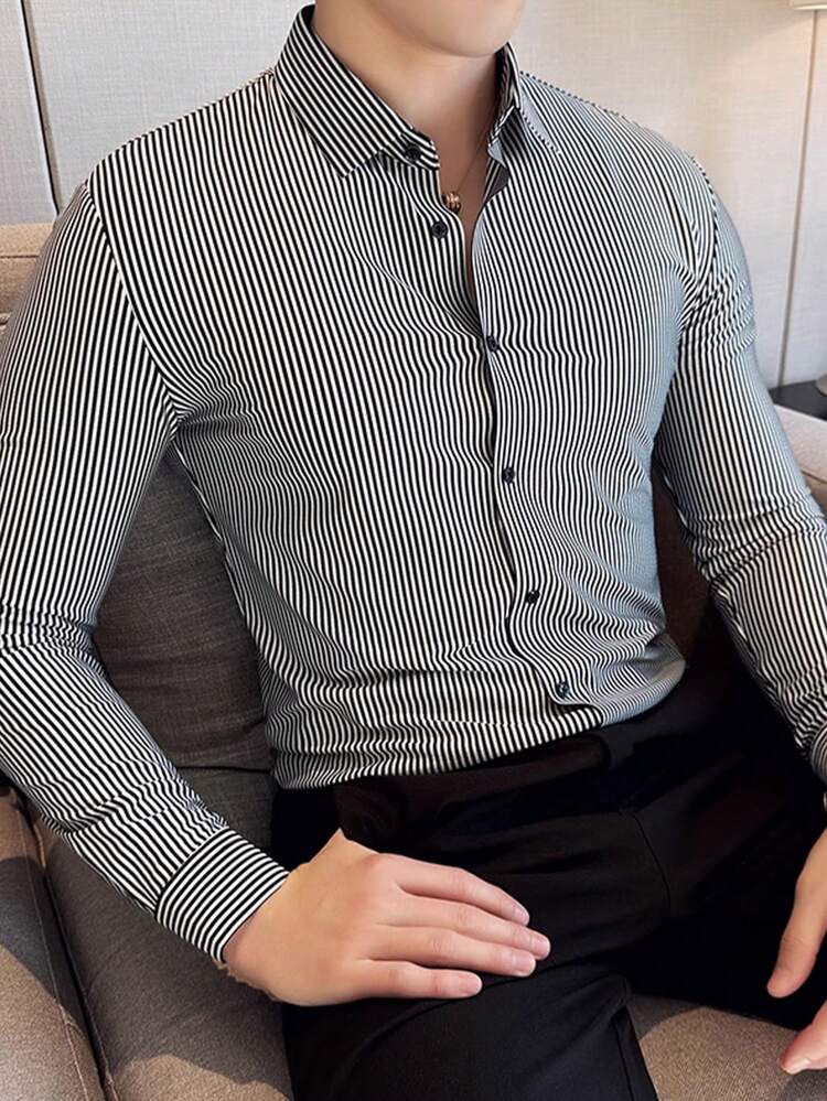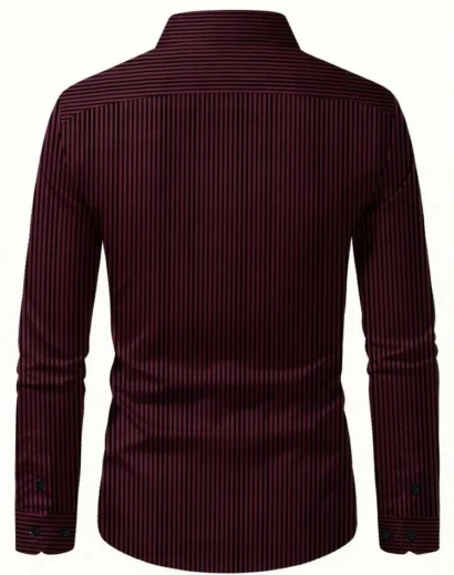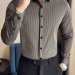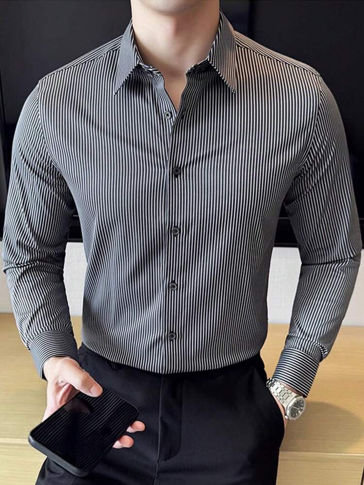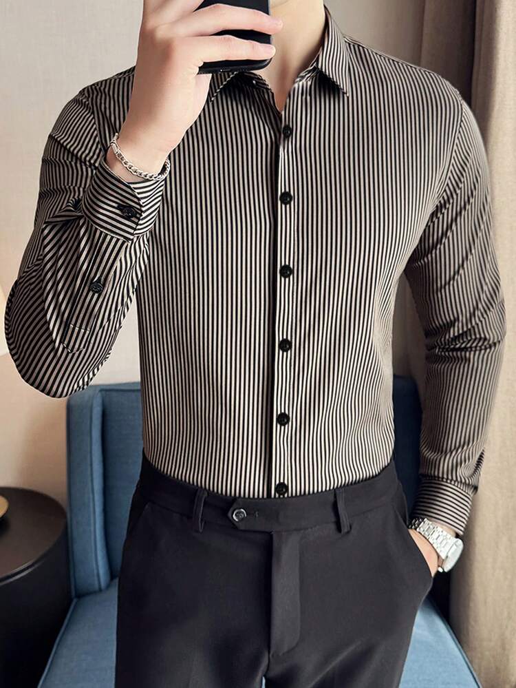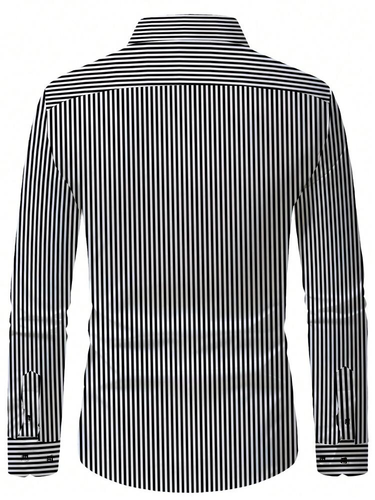 Men’s Fashionable Printed Stripe Long Sleeve Shirt – Business Casual Fall Wear