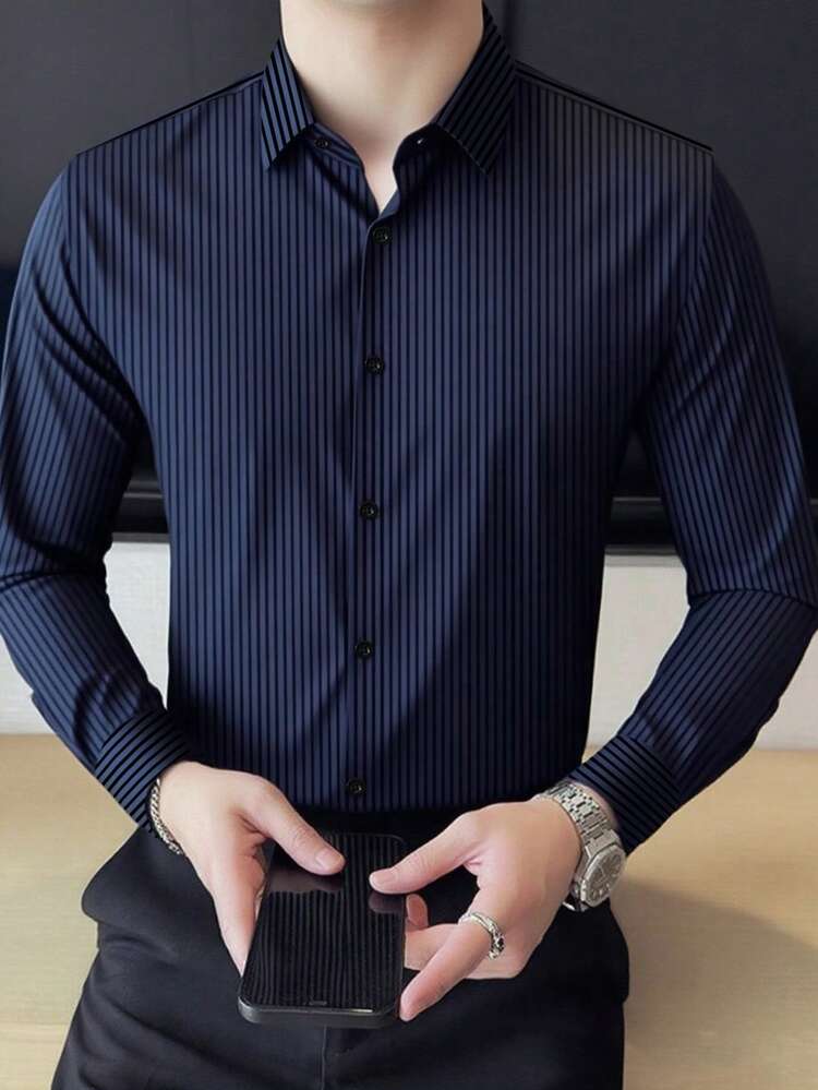 Step into the season with confidence in the Men’s Fashionable Business Casual Printed Stripe Long Sleeve Shirt, designed for men who want professional style with a modern edge. The subtle printed stripe pattern adds character while maintaining a clean, refined look—perfect for business casual settings.
