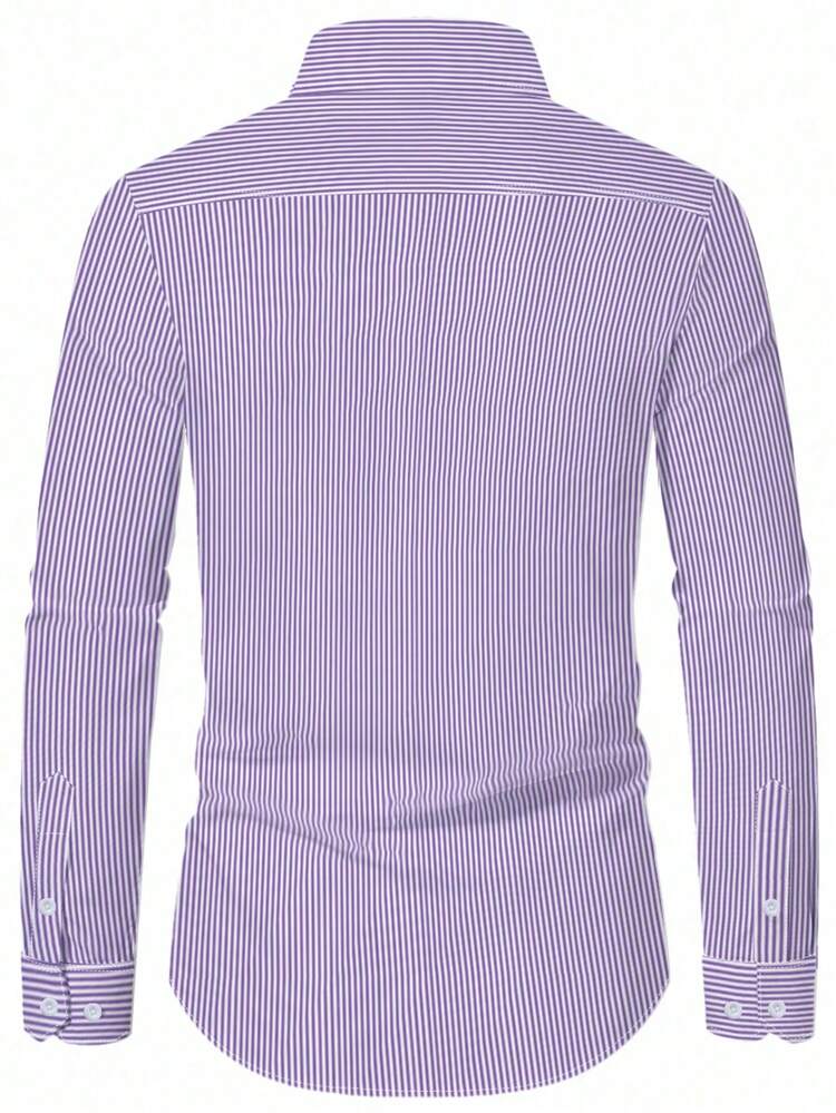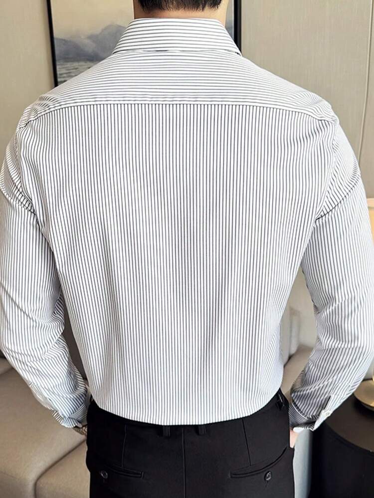 Easy to style with dress pants, chinos, or a blazer, this striped shirt delivers versatility and sophistication for everyday professional dressing.
