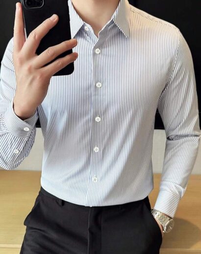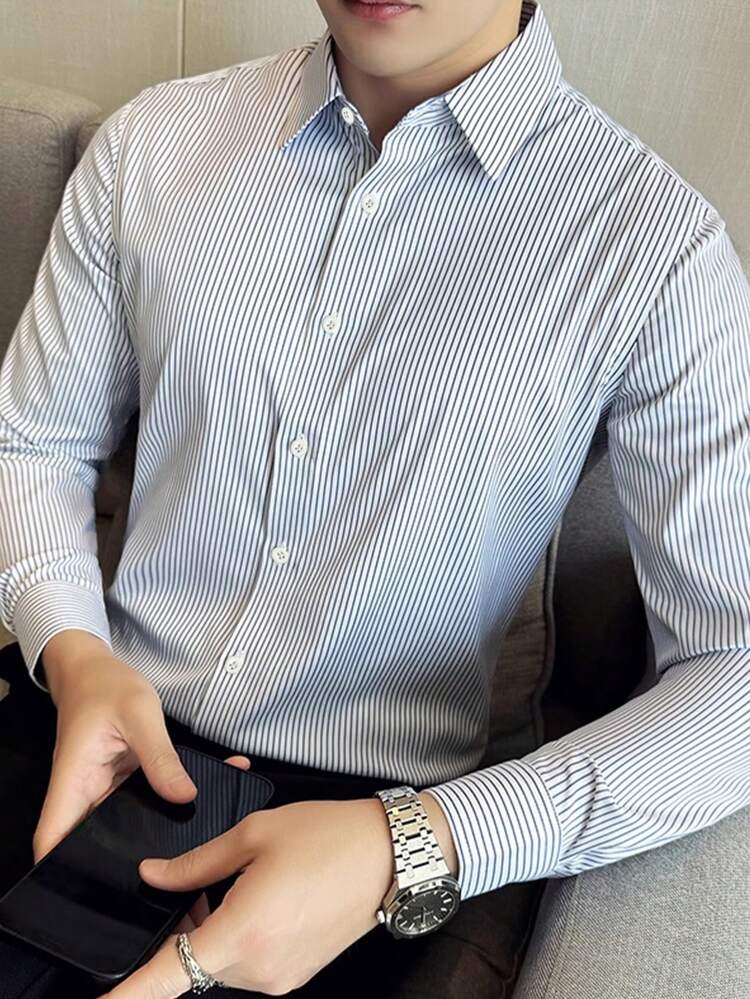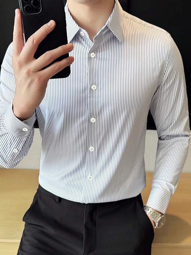 Men’s striped shirt, business casual shirt men, printed stripe shirt men, fall long sleeve shirt, office wear shirt