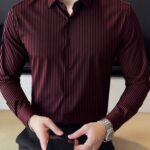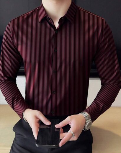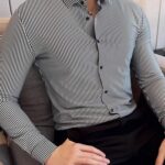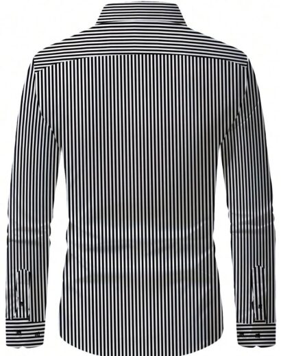 Be the first to review “Men’s Fashionable Printed Stripe Long Sleeve Shirt – Business Casual Fall Wear”
