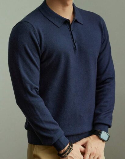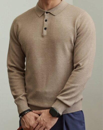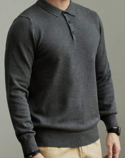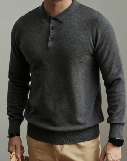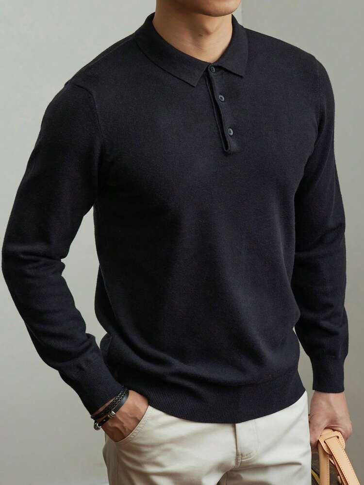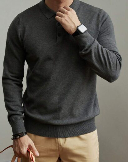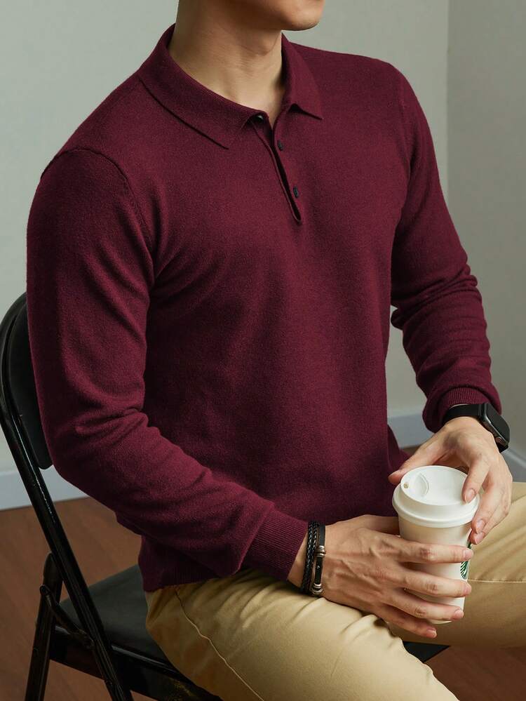 Whether worn on its own or layered under jackets and coats, this knitted polo sweater is a cold-season essential for modern men.