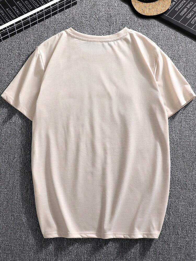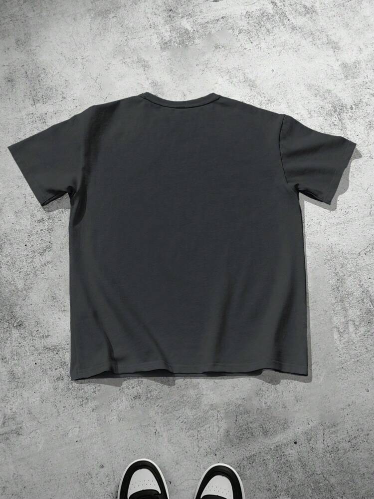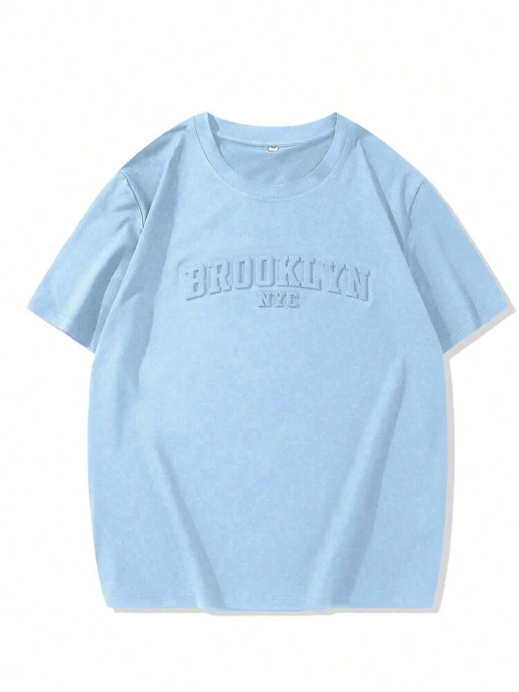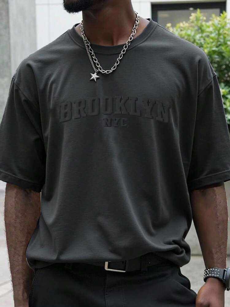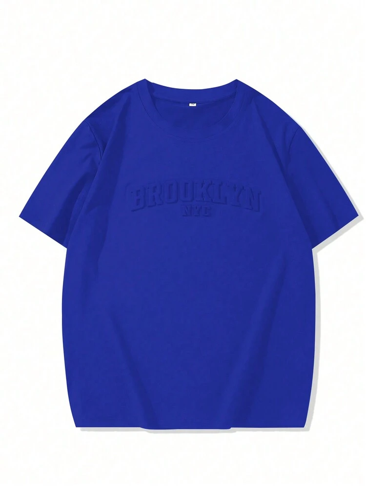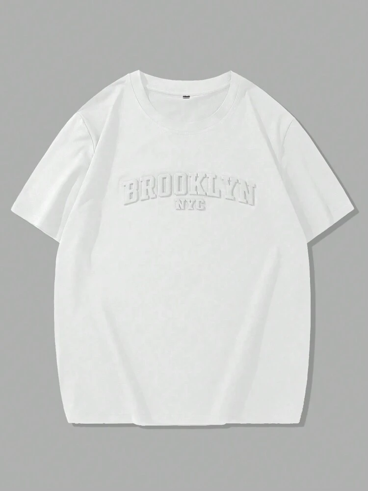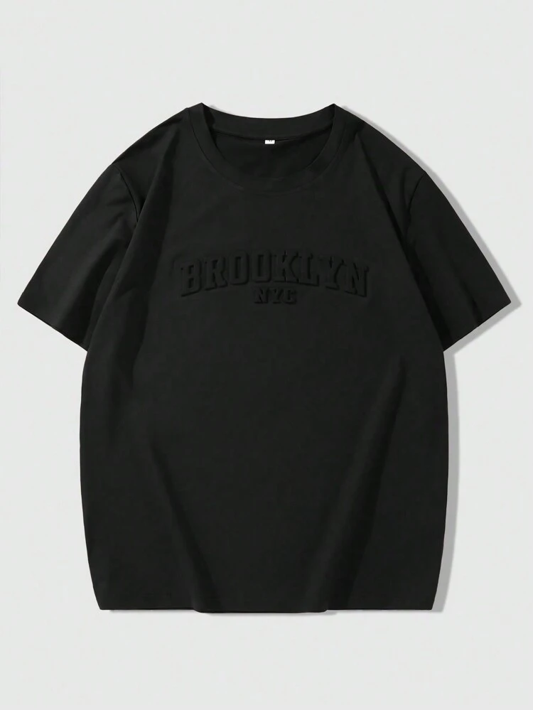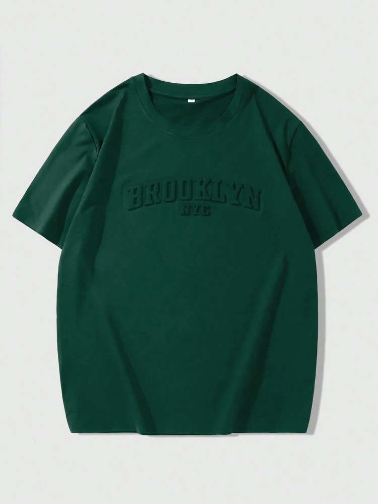 Manfinity Homme Men’s Casual Short Sleeve T-Shirt – Letter Embossed Plain Workwear Tee