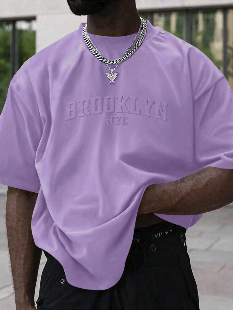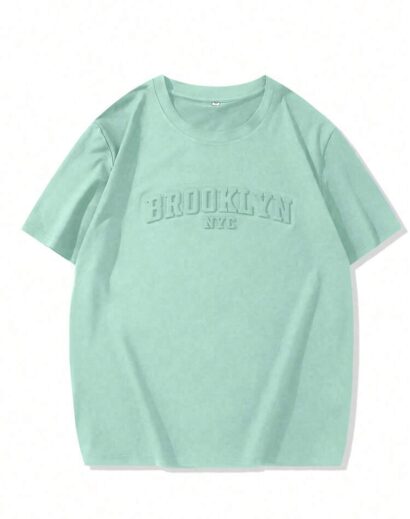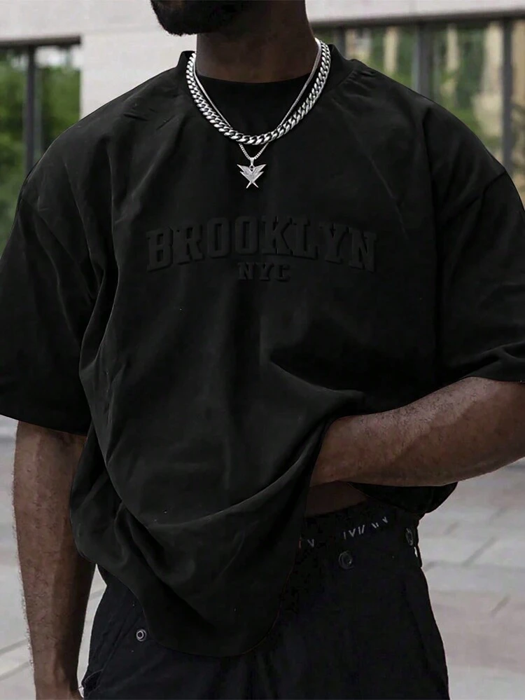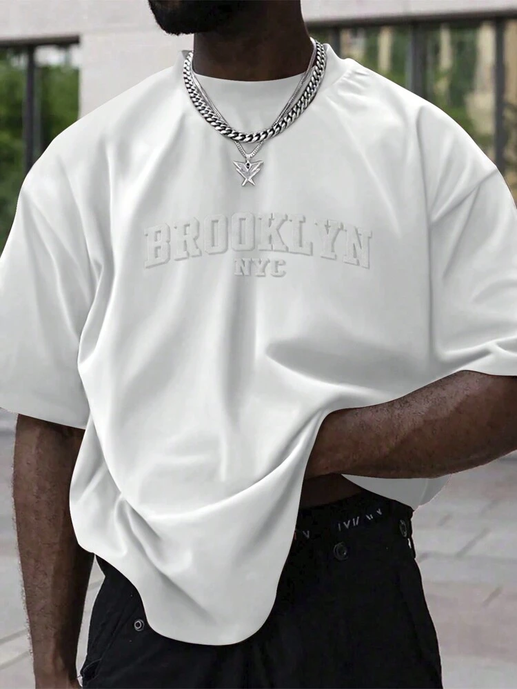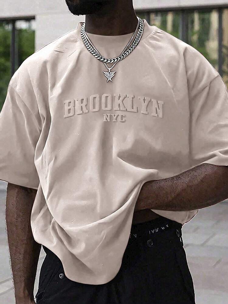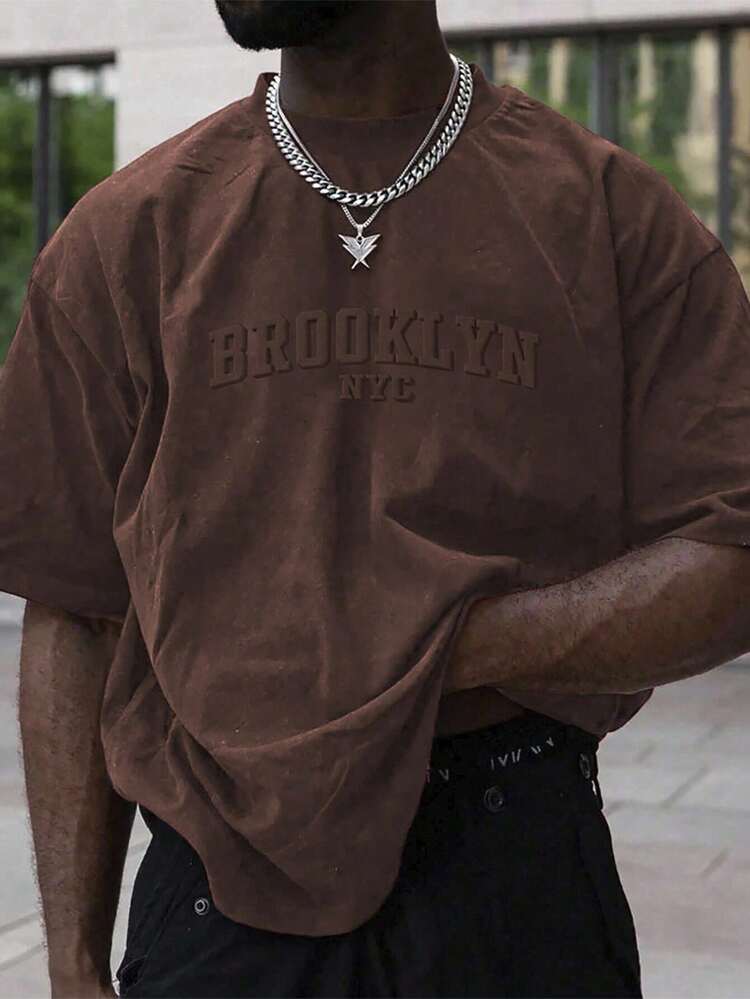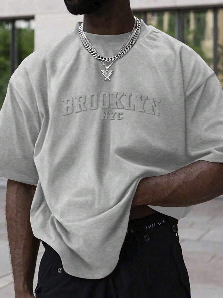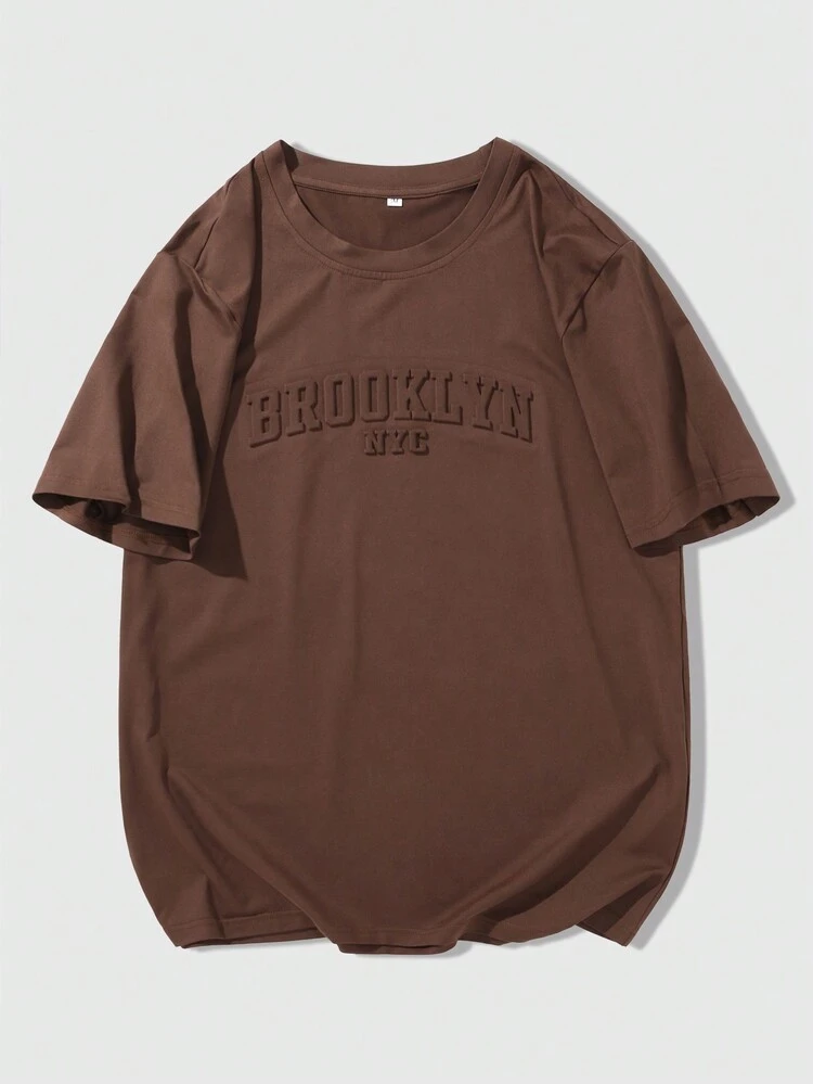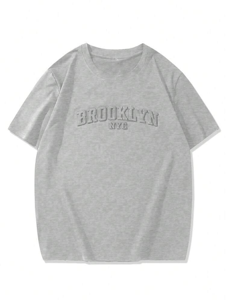 Manfinity Homme Men’s Casual Short Sleeve T-Shirt – Letter Embossed Plain Workwear Tee